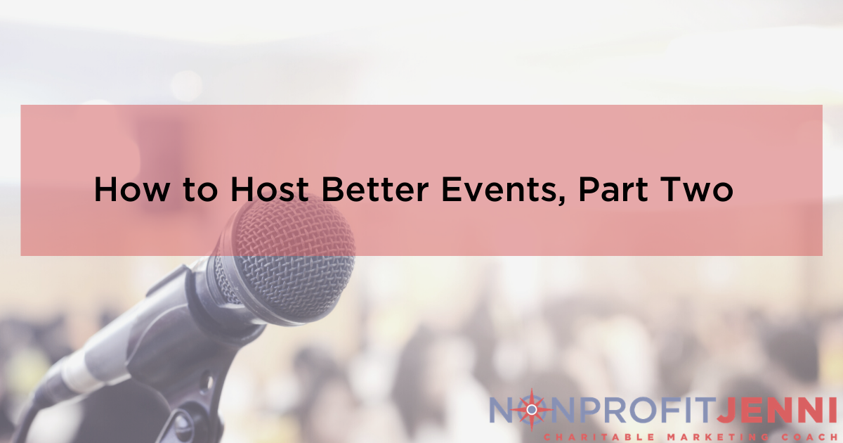 Don’t let yourself get overwhelmed as you plan, promote, and wrap up your next nonprofit event! Nonprofit Jenni offers affordable coaching and consulting services to nonprofit professionals who would like one-on-one support to develop their marketing and fundraising initiatives. You can even schedule a free initial consultation call to decide if we would work well together! You should also subscribe to the Nonprofit Jenni Show for free, because I love talking about fundraising and marketing with other nonprofit leaders.
